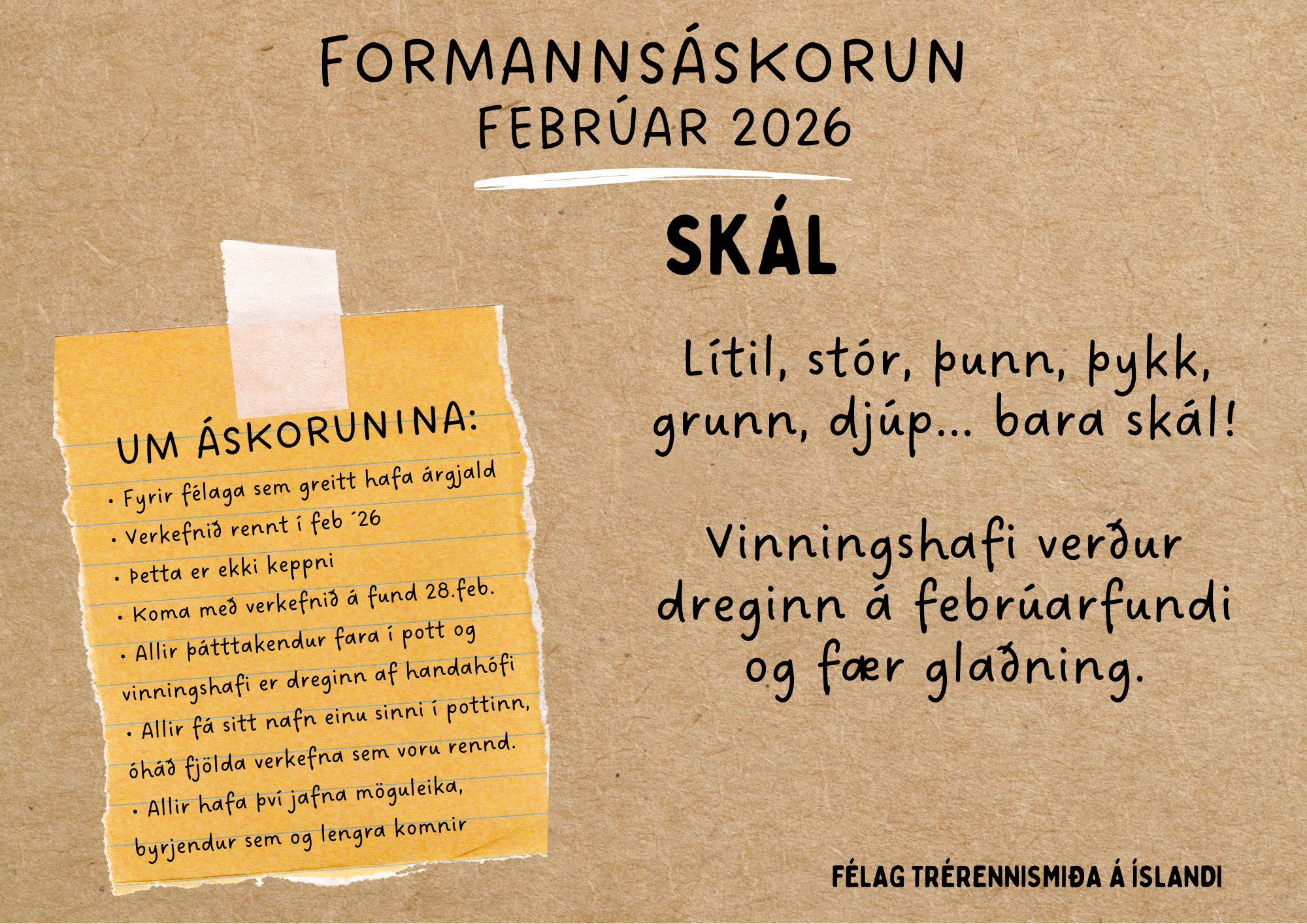 Febrúaráskorunin er skál.Allir sem taka þátt og mæta með áskorunarverkefni fá nafnið sitt í pott og vinningshafi fær óvæntan glaðning.