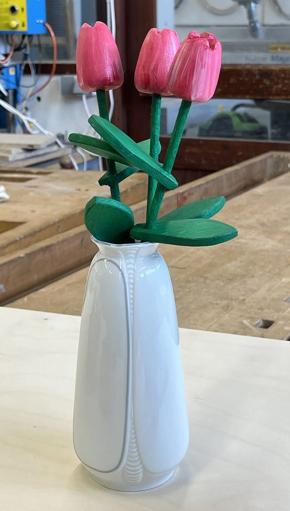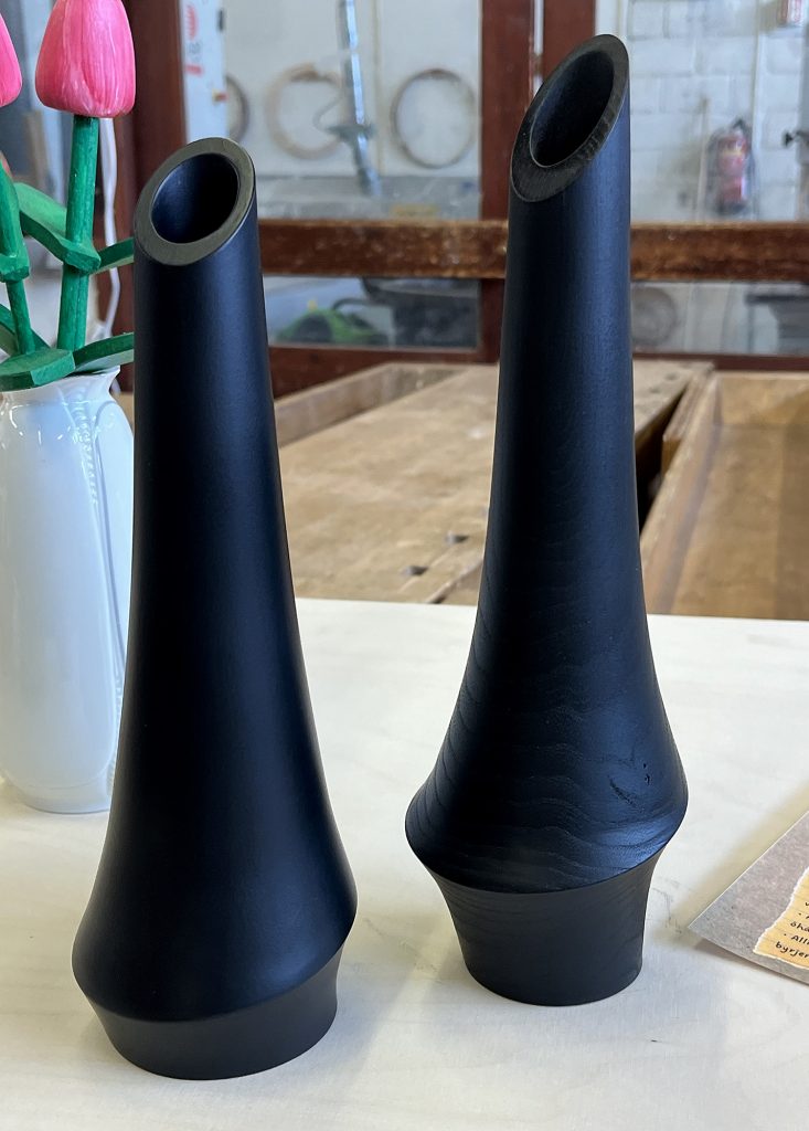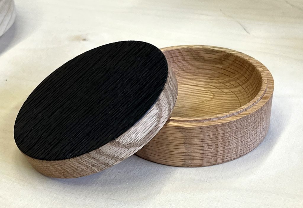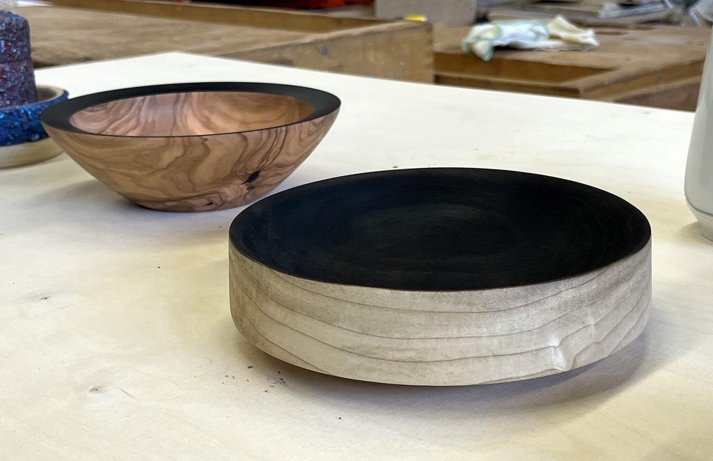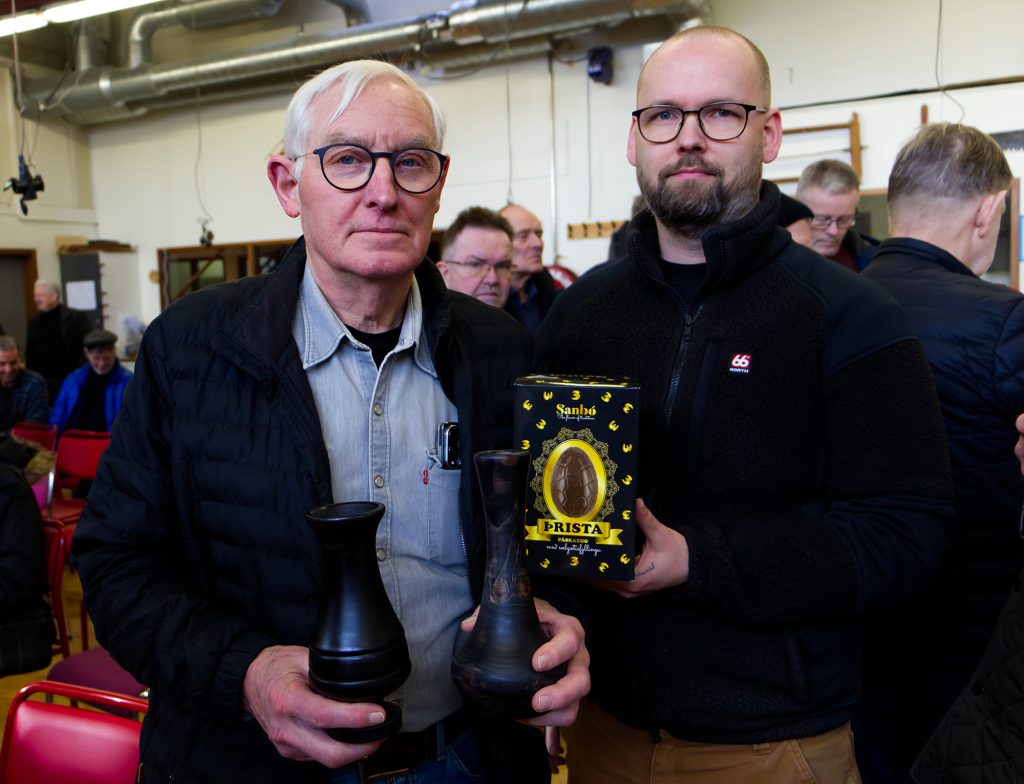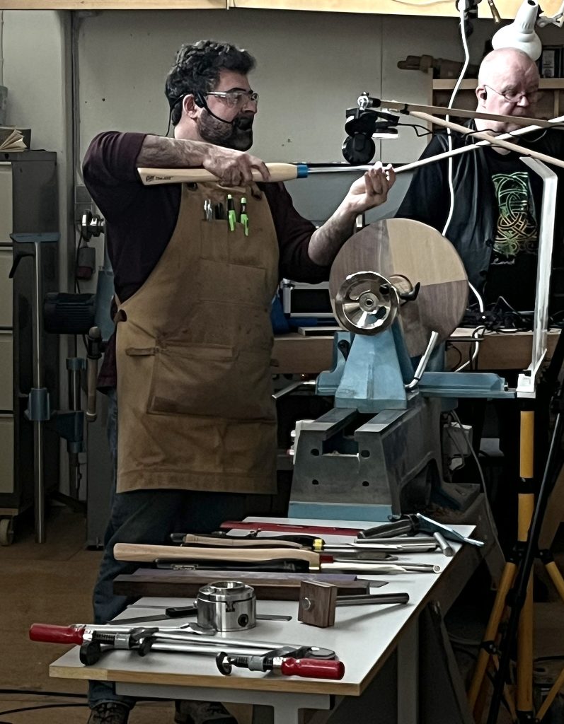 Eric sýndi okkur hvernig hann rennir skál úr flatri spýtu, með því að renna hringi sem má stafla og líma saman. Mjög áhugavert og vert að prófa. Eric var að sýna tæknina við að renna hringina sjálfa en hann mun svo líma þetta saman heima og sýnir okkur svo mynd af skálinni þegar hún er klár.